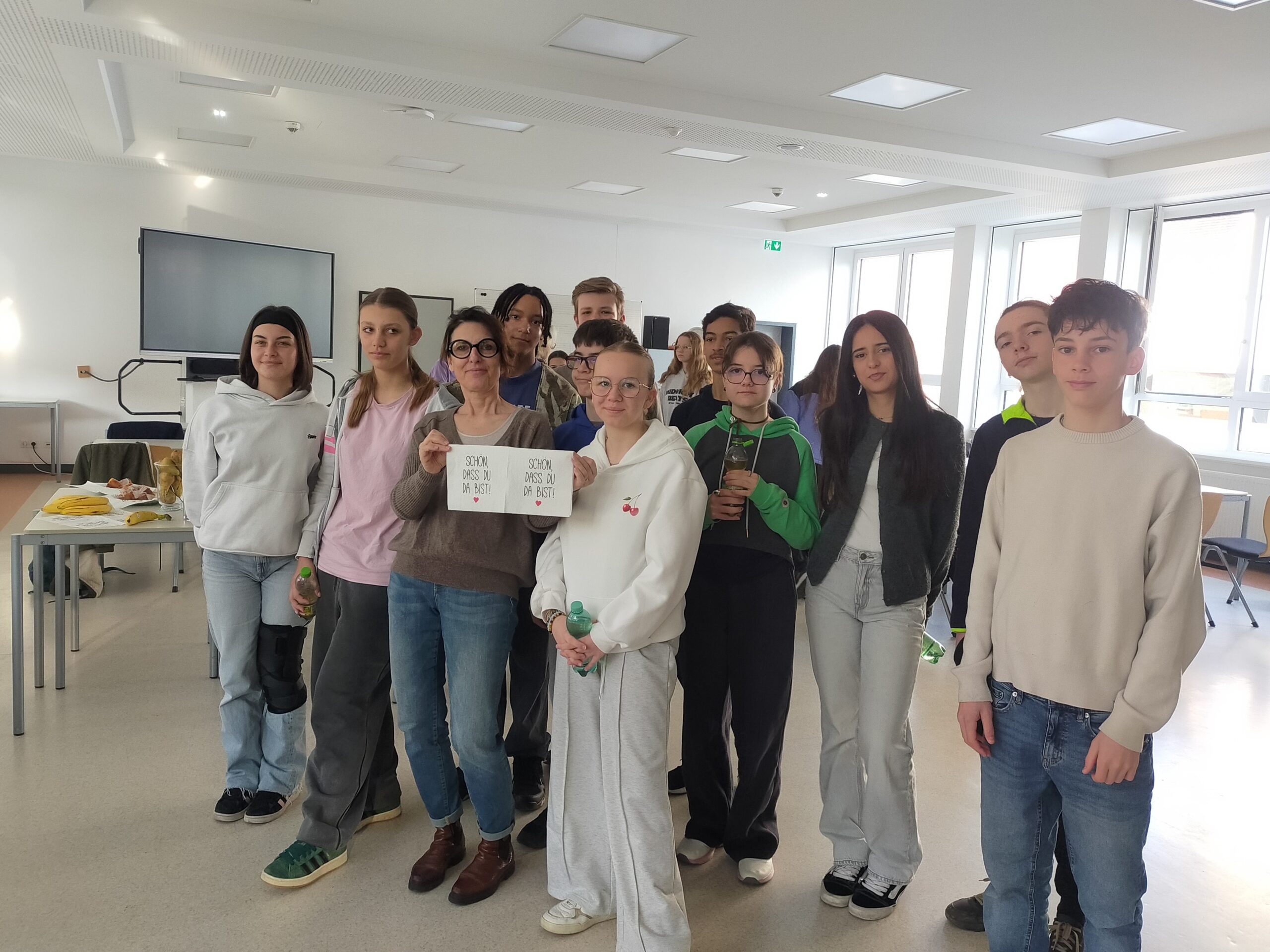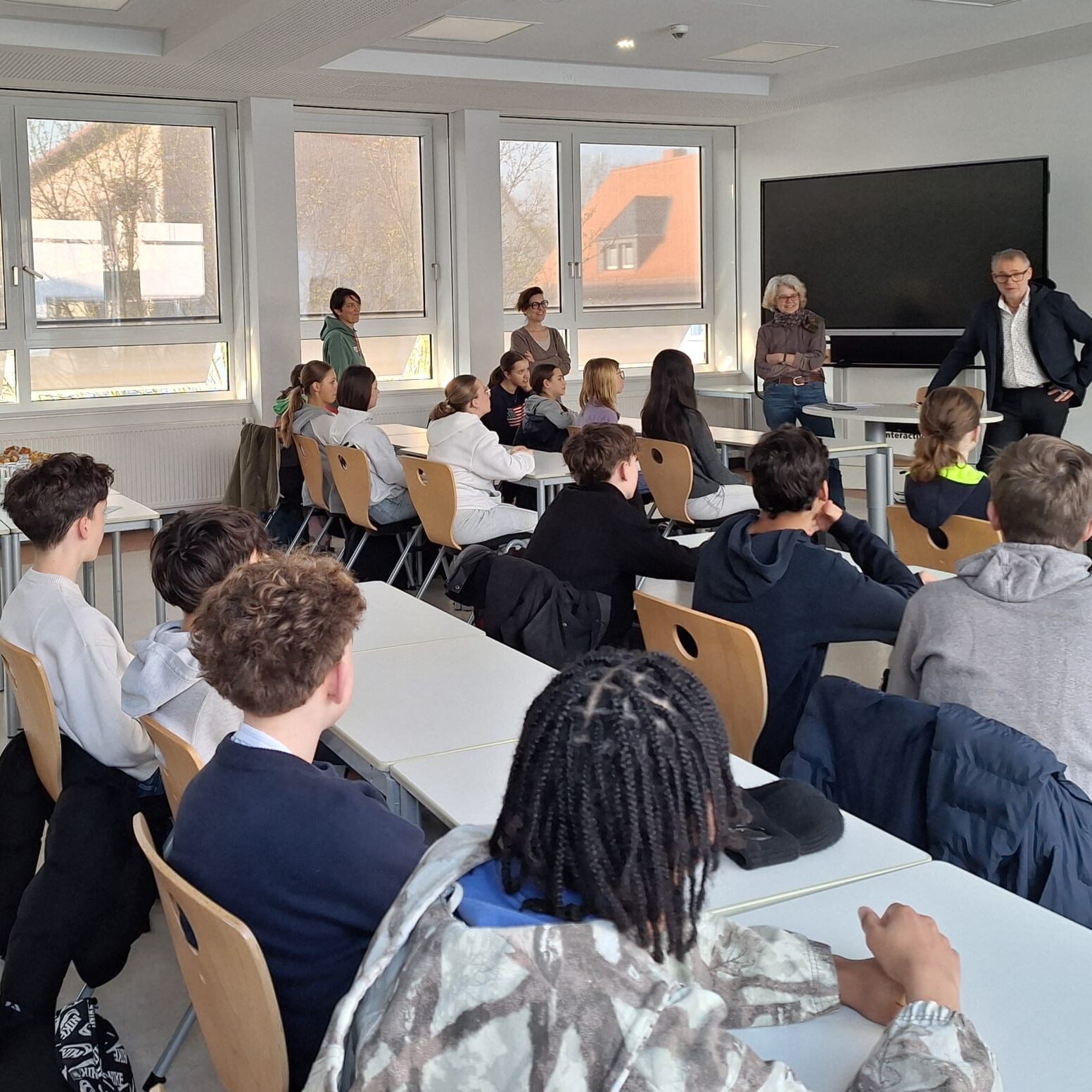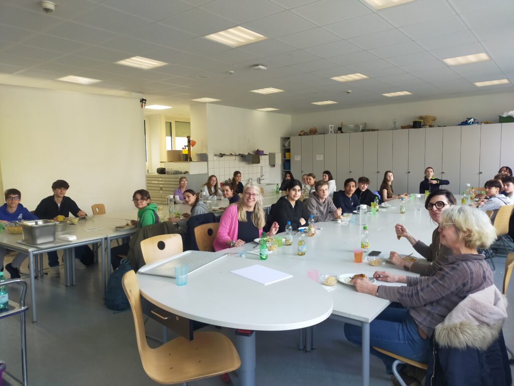 Accueil gourmand à la Karl Rehbein Schule et discours de M. Fleischmann, coordinateur des professeurs de langues.